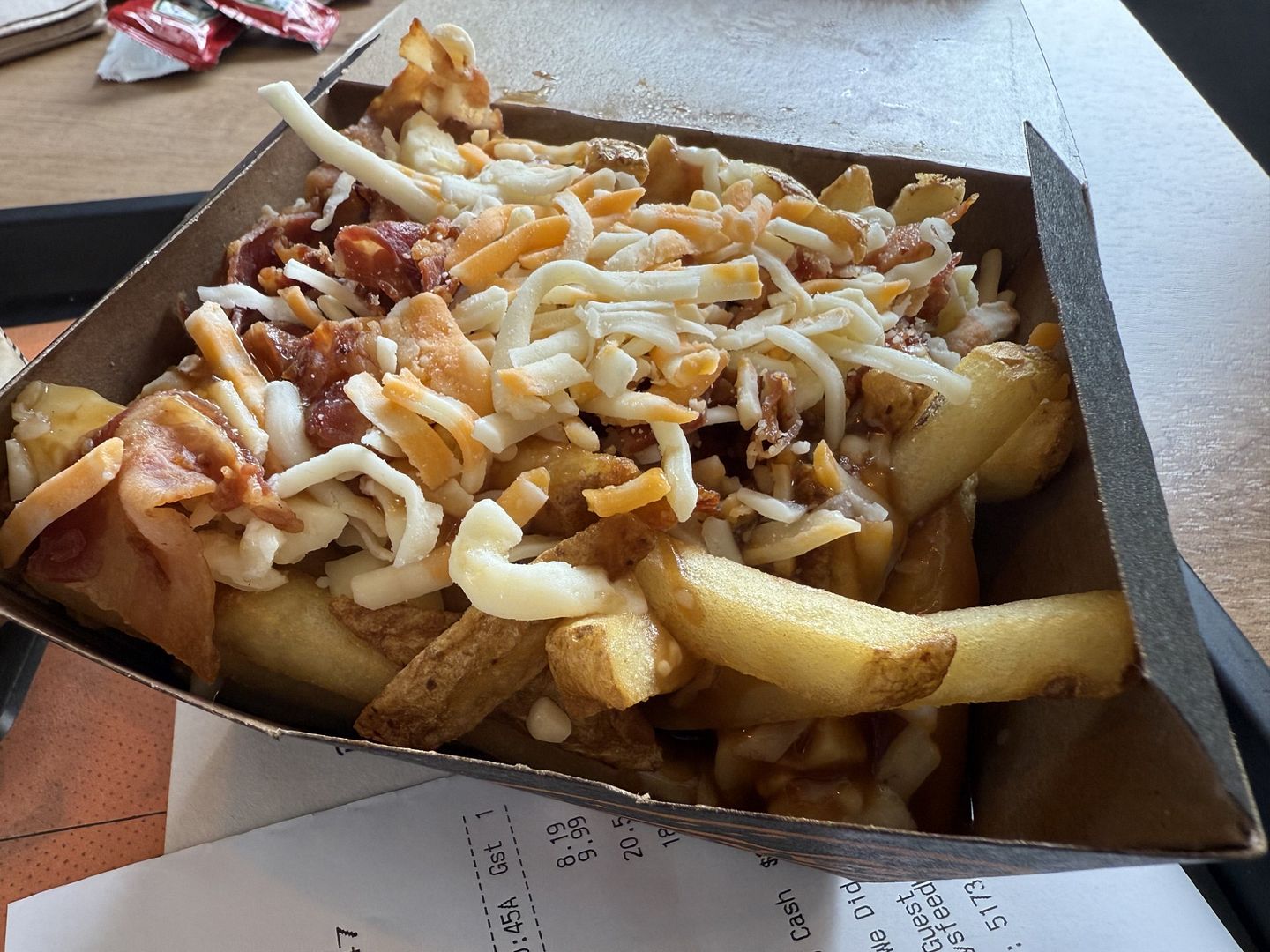 I put in an order for Angus Burger with Cheese and Bacon plus a regular order of Bacon Double Cheese Poutine. The cost was CA $20.55. I tried to pay with my Discover as I usually do on work trips but it didn’t work there so I just put in on my debit card. In US, the cost came out to $14.95 plus my bank charges $.45 International purchase fee.