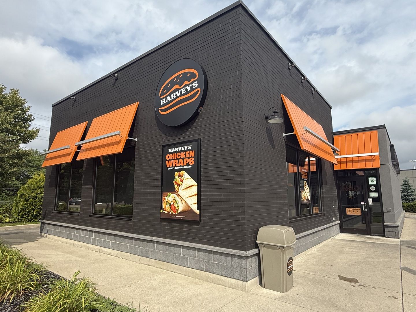 We stopped in Brantford, ON at a Harvey’s location. The Canadian fast food chain is one of the longest standing Canadian owned and operated restaurants. They have almost 300 restaurants located in every province except British Columbia. The one we stopped at is on Henry Street and Wayne Gretzky Parkway just south of the interchange with ON-403/Alexander Graham Bell Parkway. The restaurant is about fifteen years old and located in a shopping center with some other restaurants and a furniture store.