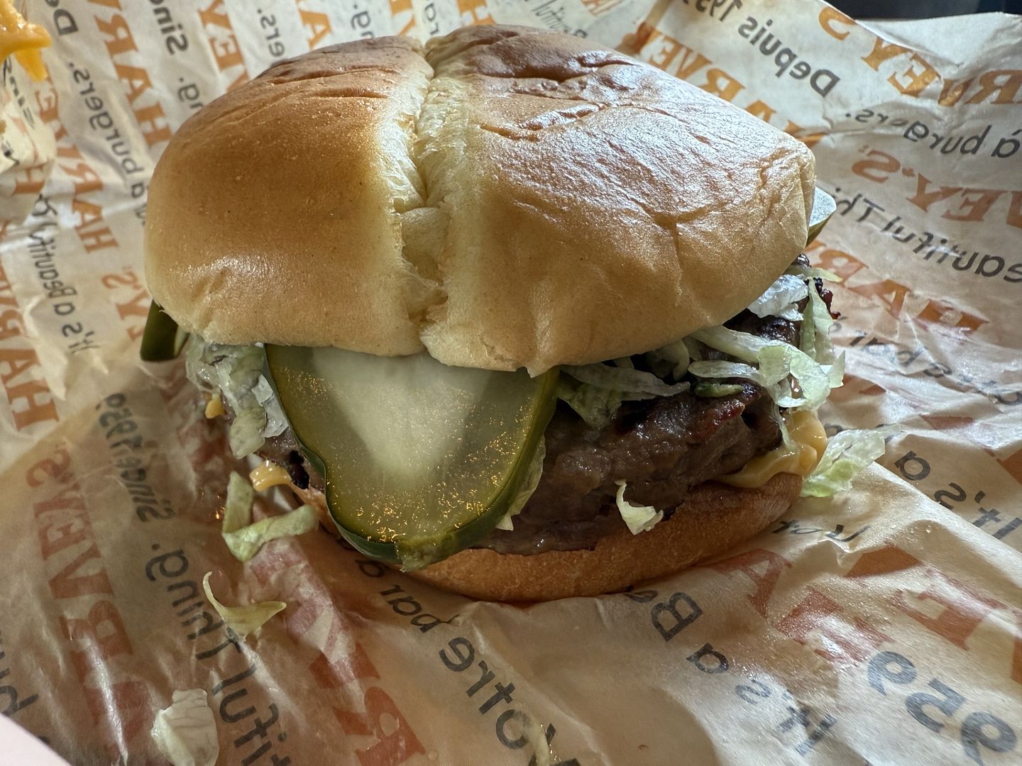 The burgers at Harvey’s are flame grilled quarter pound Angus patties. The one that I ordered comes with Cheese and bacon. You can also order the Big Hav which comes with patties plus Swiss and cheddar “style” slices or the original beef burgers that aren’t made with Angus. Like I mentioned early, I really like being able to pick toppings instead of asking to leave things off. The sandwich was a pretty typical fast food burger. It didn’t stand out as anything super unique but it was tasty and filled me up until dinner time once we got to Boston.