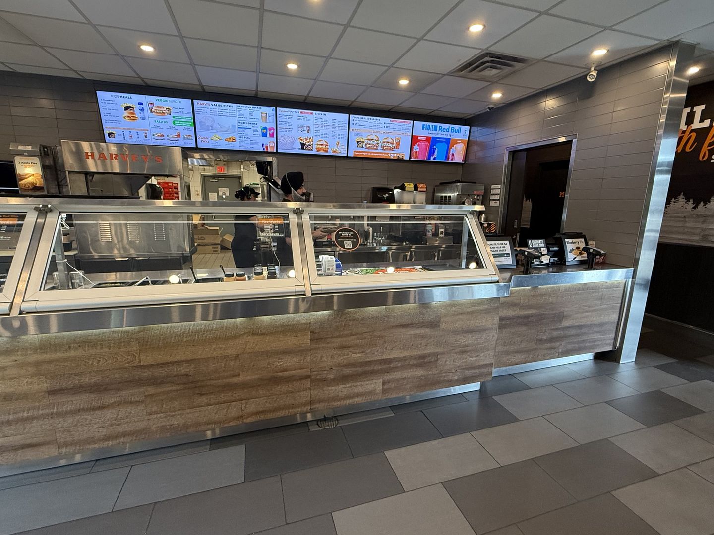 Harvey’s is sort of set up like any other fast food joint. It’s all done via counter service and that counter is right at the door as you walk in. The menu is also pretty similar to most fast food places. It hangs from the wall behind the counter TV monitors. What makes this a little different than the typical fast food burger joint is there is a sandwich line set up next to the register that more resembles a sub shop than a fast food burger spot.