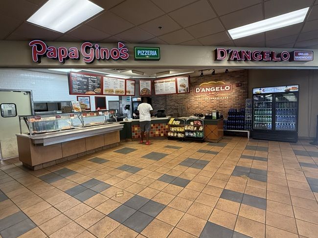 The Massachusetts rest stops weren’t quite as nice as the New York ones. The design is a little dated and a little stale but they still had a lot of food options set up in a mall food court type of setting. This one has a Dunkin, Boston Market, Cheesy Street Grill, Fresh City, Auntie Anne’s, and the one I was looking for, a D’Angelo Grilled Sandwiches/Papa Gino’s.