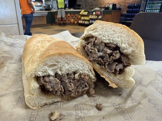 I got him a regular Toasted Italian and got myself a regular Steak with Cheese. The cost came out to about $25 for the two sandwiches.