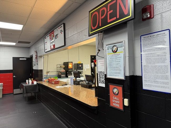 There is a concession stand in the back of the lower level right next to the skate rental. It opened up around noon. The competition started around 8:00 AM so until that time there really wasn’t any place to get a snack.