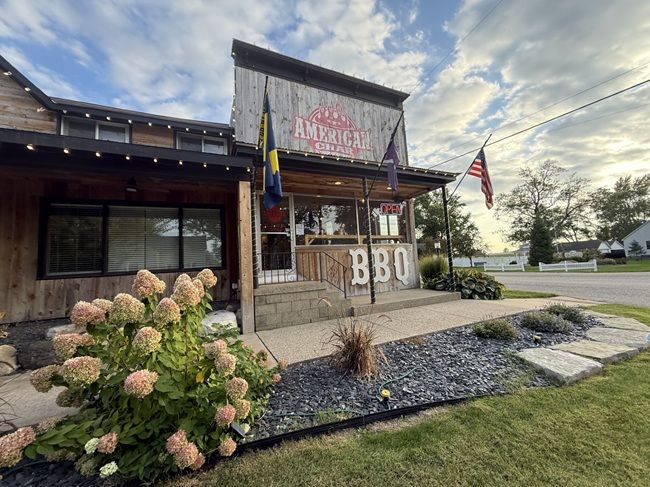 That BBQ restaurant is American Char. It’s on the corner of Adams Street and 6th Avenue in the unincorporated area of Zeeland Township known as Drenthe. The building looks a little out of place until you realize this was once a home with an ice cream parlor attached to it. The add on looks very added on but less so now that the BBQ place has done some renovation making it look more like the Southern BBQ restaurants that you’re accustomed to.