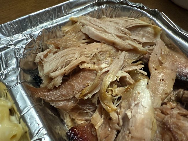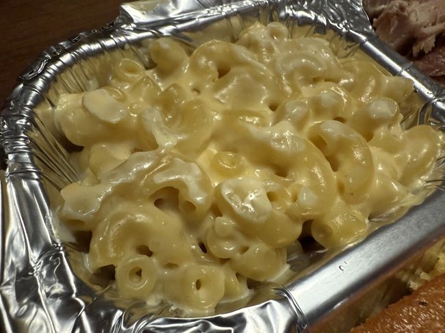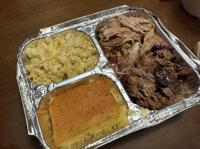 The Mini Meal Sampler was a really good deal at $15. It consists of Chopped Brisket, Pulled Pork, and two sides. I chose the Mac & Cheese and Cornbread.