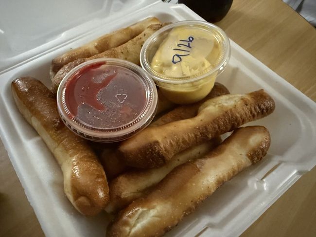 When I travel, I typically try to order enough food that I can get two meals out of it. That’s why I added the breadsticks.