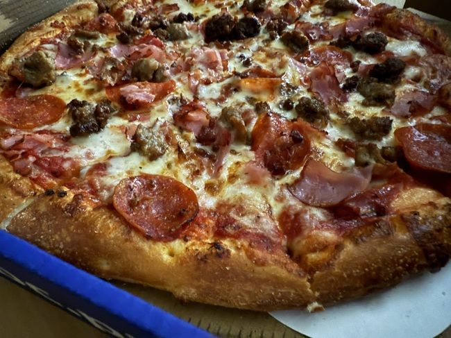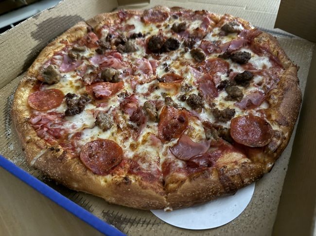 The pizza I ordered was the Extreme Carnivore. This pizza is topped with all the meats. Classic pepperoni, Extreme cup and char pepperoni, ham, Italian sausage, bacon, and ground beef.