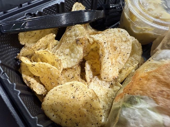 The sandwich came with chips and potato salad. I didn’t even touch the potato salad because I don’t like potato salad but the chips are my favorite Salt and Pepper Kettle Cooked chips. There was a pretty big handful in the box which I ate after I got gas and got back on the road.