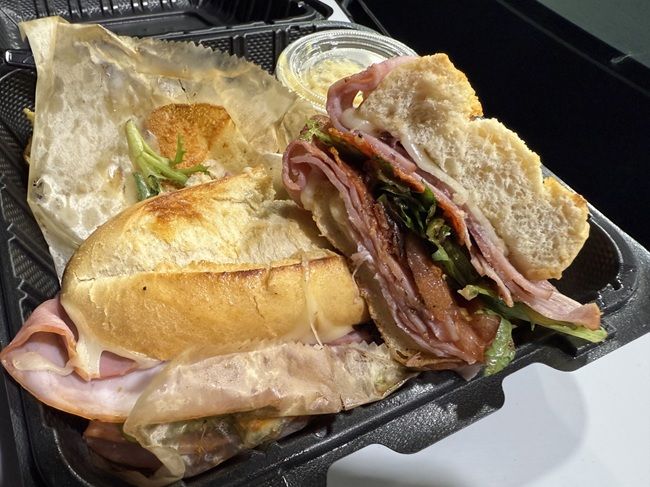 I ordered The Italian Stallion. The sandwich is Michigan ham, pepperoni, provolone cheese, a house Italian dressing, tomato, and mixed greens served on a Cuban loaf. The sandwich is a perfect example of an Italian. The meat was piled on to the crispy loaf of bread that was softened with the tangy Italian dressing. I took the box and ate it while I was pumping gas. The sandwich isn’t huge but it packs a punch and it is really delicious.