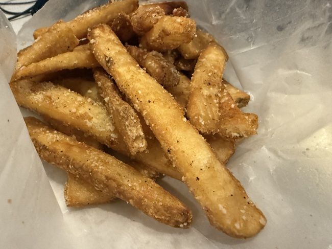 The building is obviously very small and ordering ahead is actually a pretty good idea. I didn’t do that and went inside to order. There’s a small order area in the middle of the space right in front of the kitchen. The lady at the register kind of looked at me like I was nuts when I told her I wanted to put in an order to go. I had grabbed a menu from a holder off the wall and glanced over it pretty quickly. I put in an order for The Italian Bomber. I also noticed the order in front of me that was still on the screen had fries so I just blindly asked for fries too. She asked if I wanted regular or truffle. Truffle..duh.
