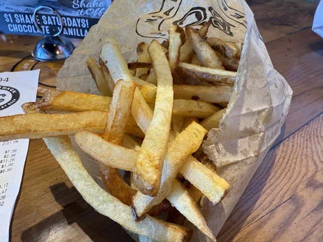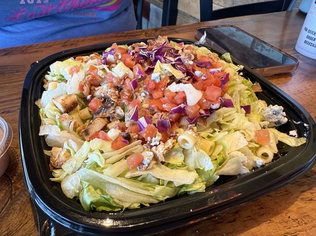 J ordered The Shack Salad. I made sure to make it a point earlier that when the food was brought out, only my sandwich and fries were in the bag. We gave it a couple of minutes thinking the salad was still being made but after five minutes or so, I had to go back to the counter and ask about it. The kids working were totally confused about what I was saying. I finally got them to realize they didn’t bring out the salad we ordered. It took another five plus minutes for the girl I talked to come out with another bag and asked if we ordered a salad.