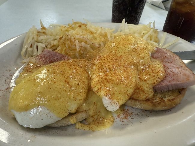The benedict came with hash browns on the side. These were a little undercooked. I don’t like my potatoes burnt to a crisp but I do want them to not be soggy. I still finished the whole plate but these definitely could have been cooked longer.