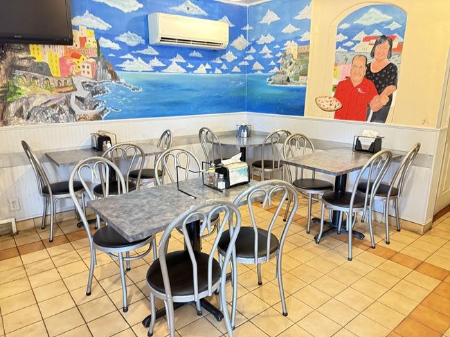 I was grabbing my pizza to go but there is a small dining room off to the left of the counter. There are just a handful of tables but the real reason to at least peak in here is to get a look at the mural on the wall. When the new owners took over, they honored the legacy of pizzeria with a mural featuring the original owners, Franco and Francesca Impellizzeri.