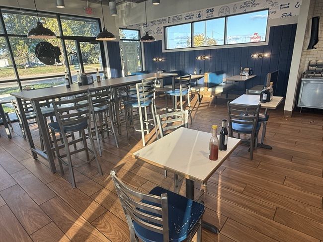 I reluctantly realized it was going to be a few minutes so I went and sat down in the dining room. Again, the newness of the store really shows. The dining room has a really nice look to it with floor tiles that look like natural wood, and a blue and white color scheme throughout that gives it a bit of cleanness.