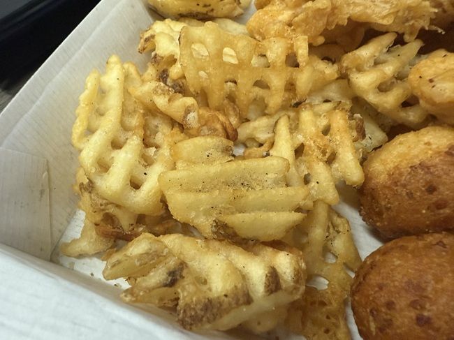 I started with the fries which is what I ordered for one of my sides. They’re simple frozen waffle fries with a little bit of seasoning. It’s nothing too out of the ordinary but it they were tasty enough for fast food fries.