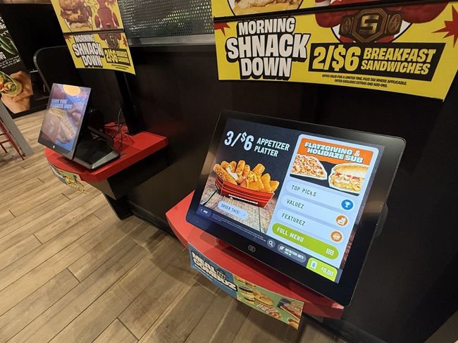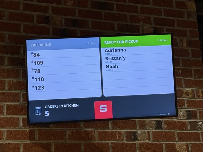 Unlike Speedway, you don’t need a stamp on the receipt to show you’ve paid. The kitchen can see if you’ve paid or not and that’s how they know to give the food to you. There is a TV screen hanging near the pick up counter with order numbers. You can see where you’re at in line. If you order online, it shows a name. If you order on the kiosk, it shows a number that matches your receipt.