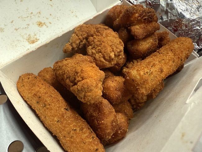 The last thing I got was the Classic Sampler which is a choice of three of the fried appetizers. I chose the Wisconsin Cheese Bitez, Mozzarella Sticks, and Boneless Bites. The small box was overflowing with delicious fried food.
