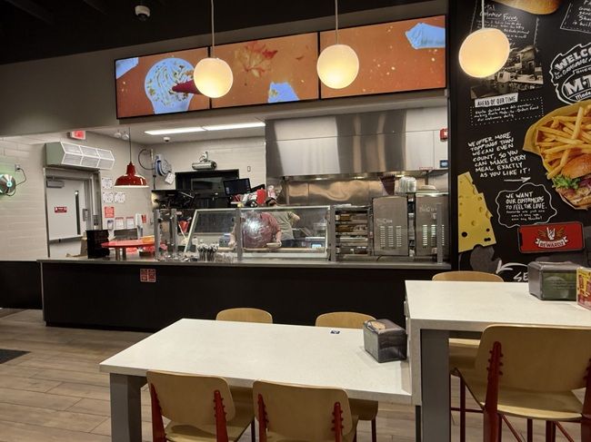The kitchen area is pretty large and near the back of the store. There’s really no interaction with that kitchen though until they hand you a bag of food. You can’t order with a person. It all has to be done through the touch screen.