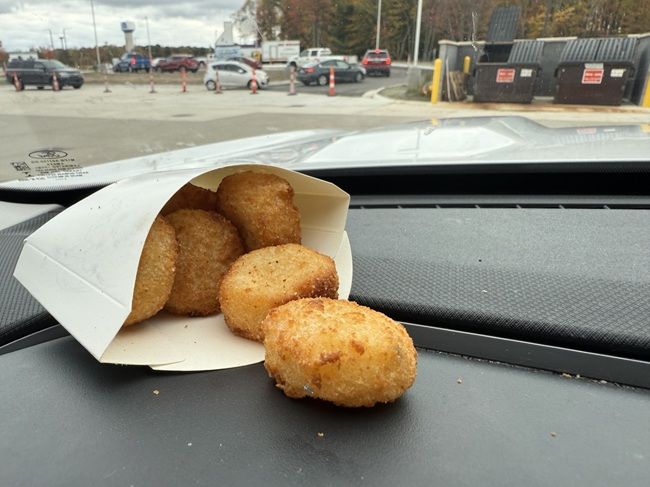 I actually started with the Cheesy Taters because I had no idea what they were. The best way I can describe them to someone who hasn’t seen them before, they’re like cheese filled tater tots. The outside is nice and golden brown and really crispy. The inside is soft and pillowy and filled with cheese. I’m not a huge tater tot guy so these were just alright to me. I’m guessing J or L would really love them. I would eat them again if they were in front of me but I might just stick to the fries next time.