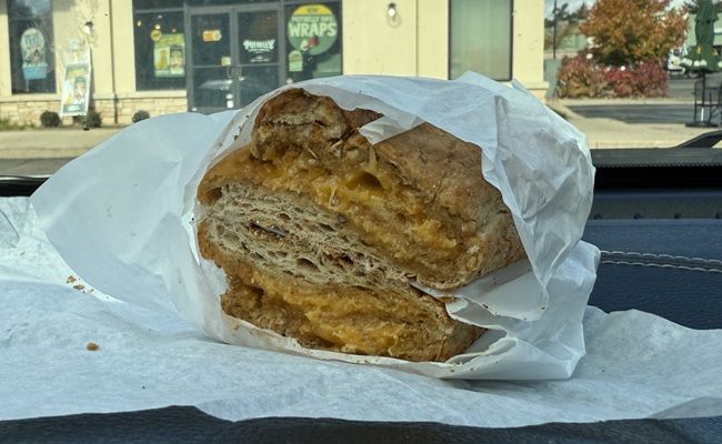 I didn’t realize this but last time we ate at Potbelly, L got the PB&J sandwich which is served warm. She had just said something to J about wanting that sandwich again. I didn’t know that so I ordered her the Grilled Cheese and added bacon to it. She did that a few weeks ago when we went to Five Guys so I figured she’d like it here. The default bread here is the Multi-grain. Had I been paying attention, I probably would have switched it to white but that didn’t seem to be a problem for L. The sandwich is simple with cheddar cheese and the bacon for an additional $2.79. She seemed excited when I got in the car and told her what I had for lunch. She took the sandwich downstairs when we got to the rink so I didn’t see her again until later that evening when she told me the sandwich was really good and she wouldn’t be mad if I picked Potbelly up for lunch again when I pick her up from school.