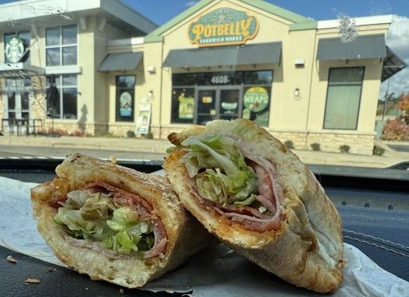 Potbelly Sandwich Works is on Stadium Drive in Kalamazoo’s Knollwood Neighborhood to the east of Drake Road. It’s part of one of the out building shopping plazas in the University Commons center. The Potbelly shares a building with Starbucks in the space that used to be a Jimmy John’s.