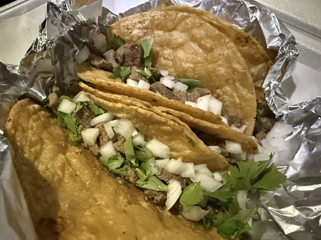 There isn’t really an order area. A guy came out of the tent with a note pad and started taking orders once he finished up packing someone else’s order up. I kept mine simple with my usual. Four steak tacos with cilantro and onion. The tacos are $4 each so by the time I added a tip, my total was pretty close to $20.