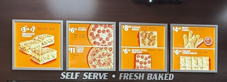 The thing about this concept is it’s not a full on Little Caesars restaurant. You can’t put an order in on the app and the menu is limited to pretty much Hot ‘n Ready items. They had pizza, Italian cheese bread and wings ready at 6:00 on a Monday night. There wasn’t any place to put in an order if you wanted something different so you’re pretty much at the mercy of whatever is ready at that moment.