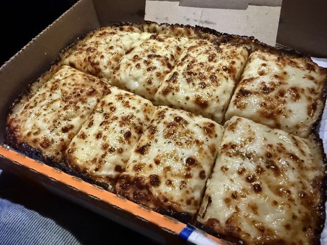 The Italian Cheese Bread is kind of like a Detroit Style Pizza. It’s a rectangle shape with a very deep crust with a crispy outer edge. The bread is covered in cheese and Italian spices. I grabbed a cup of marinara to dip the bread in to. I don’t think I’ve ever had this from Little Caesars before and I was pleasantly surprised at how good it was. It’s really simple, bread and cheese, but it’s a classic combination that always works for me. This was a way better option than a whole pizza. It was easier to eat sitting in my car in a parking lot in downtown Zeeland and I didn’t end up wearing grease all over my shirt like I likely would have with a pepperoni pizza.