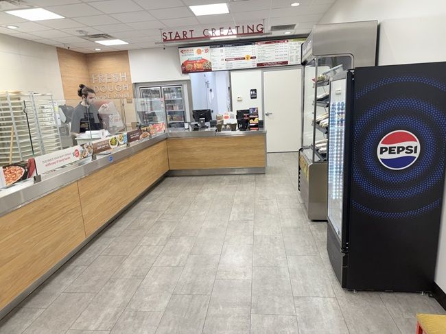 The restaurant is a little bigger than you’d expect for a place that doesn’t cook anything and doesn’t have any type of dining room. The pizzas are made right in front of you kind of Subway style if you walk in and order but I didn’t do that. I walked in about a half hour before closing and the guy working asked if I had an online order. I said yes and he picked up the pizza and handed it to me over the counter.