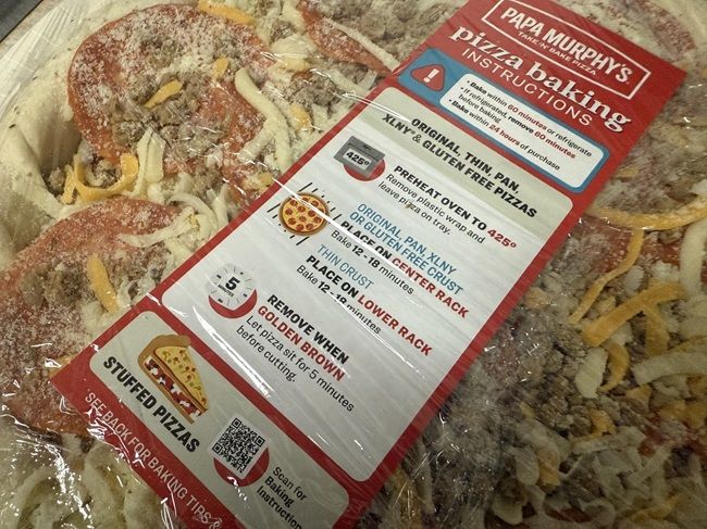 Cooking instructions are placed on top of the pizza. If you want a crispier crust, they suggest taking it off the baking tray that the pizzas come on for the last five minutes of cooking. I wanted that crispier crust so I did that.