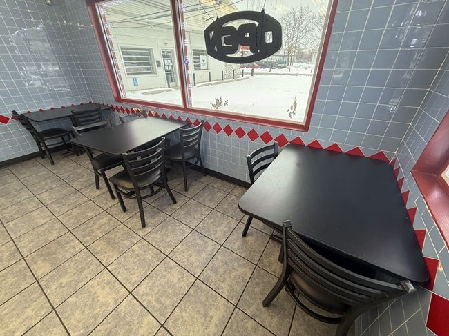 The restaurant is pretty big for this kind of place that focuses mostly on carrypout. The building, at one time, was a Chicago Subs & Grill and there were probably more tables but now there are a lot fewer tables and more open space. The business was sold to the current owners in 2017 and I’m pretty sure they did a remodel of the place. The floor tiles look fairly new and the old color scheme was more red and yellow. Now the space has taken on light blue and red tiles with hints of the yellow still in the trim of spaces that are closed off to the public.