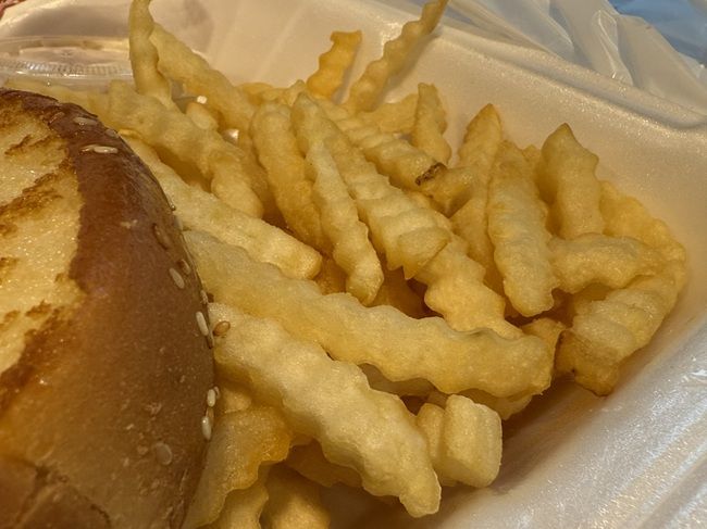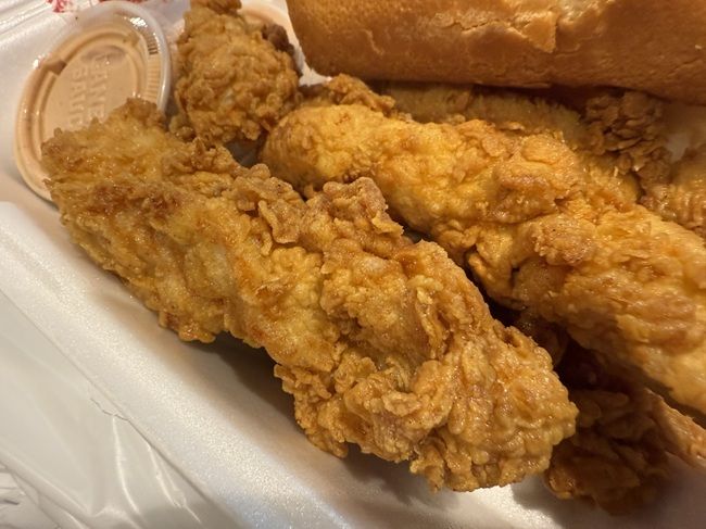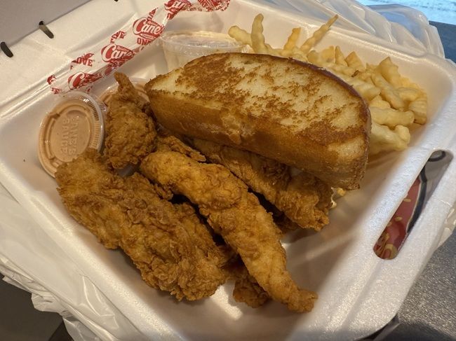I ordered the Caniac Combo which comes with six chicken fingers, crinkle cut fries, Texas Toast, slaw and a large drink. The cost was a little over $17 and I had a box of food in less than five minutes.
