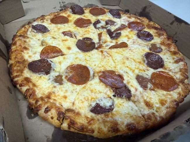 I ordered a medium Meat Lovers pizza. This pizza has the usual suspects with pepperoni, sausage, and mozzarella cheese but the twist is it also has sojouk which is spicy dry-cured Middle Eastern sausage made with beef or lamb seasoned with garlic, cumin, sumac, and red pepper. I had no idea what I was getting in to with that but I typically like most cured sausages. It did have a flavor I wasn’t used to but it was a good flavor. The thing that really surprised me about this pizza was how crispy yet soft the crust. This isn’t quite Bruno’s pizza but it’s still a pretty tasty pizza. Much better than I would have guessed from a restaurant that doesn’t specialize in pizza.
