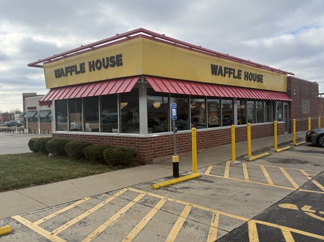 The Waffle House in Collinsville, IL is right off I-55 on Bluff Road. The iconic Waffle House building is in a shopping plaza with several other businesses and restaurants but it stands alone on the northeast side of the development. We pulled in to the parking lot around 11:30 to grab some breakfast/lunch before heading in to St. Louis for the US Figure Skating Championships at the Enterprise Center.
