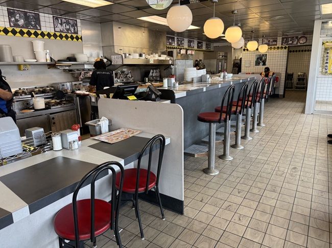 The restaurant is a small diner with a large lunch counter right as you walk in and booths off to either side of it. We saw an open booth so the four of us headed there, grabbed some menus, and waited for the waitress to follow us over.