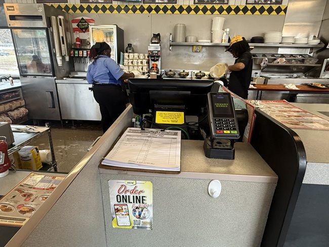 Our bill for breakfast/lunch was around $45 before tip. The waitress brings you a hand written check then you take it up to the cash register to pay.