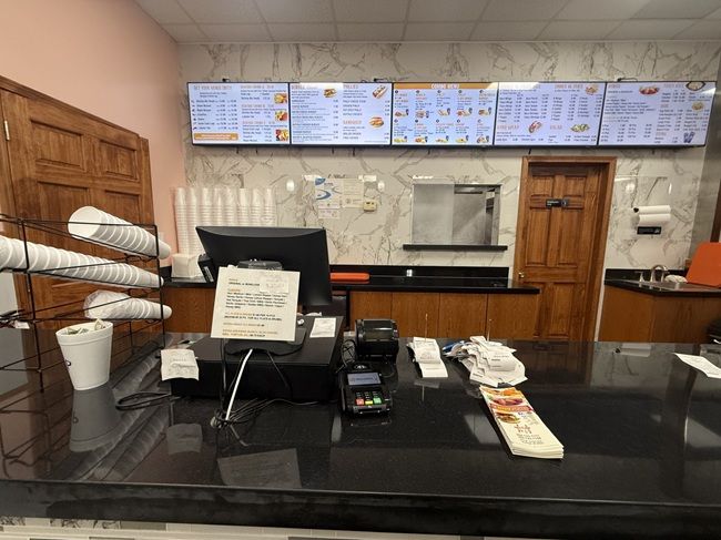 The restaurant is pretty much what you’d expect from this kind of place. There is a counter at the back of the dining room with the large menu displayed over multiple TV screens. The lone employee asked me if I was the carry-out order as soon as I walked in the door. I said I was and he went to grab the two boxes of food which were sitting there waiting for me.