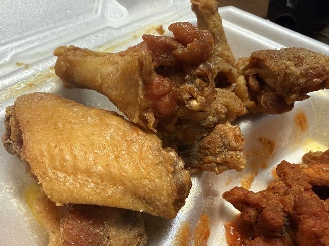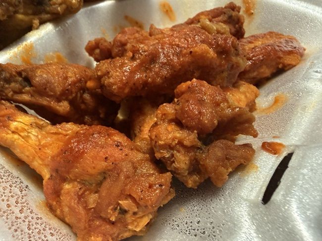 I put my meal in using their online ordering before I left the arena. As the name implies, they have burgers and wings. They also have a pretty full menu that includes Philly sandwiches, fried rice, fish dinners, shrimp dinners, and gyros. I was in a wings mood so I put in an order for 15 bone in wings and a large order of fries. The cost was right around $20.