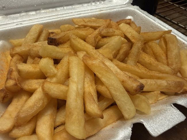 Before leaving the store, the clerk told me the fries were unseasoned but they had some seasoning at a table next to the pop machine. I popped open the Styrofoam container and added a little bit of seasoning salt before closing it back up and heading home to eat.
