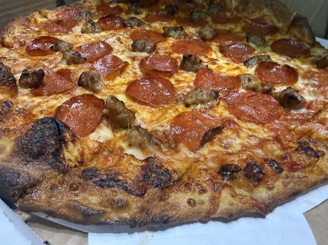 You can order pizza in thick, thin, original and cauliflower crusts. I picked the 14″ thin crust, added pepperoni and sausage then did a party cut because thin crust pizza is better in squares. I didn’t ask for it but the pizza came out almost well done. It was very reminiscent of a Chicago tavern pizza.