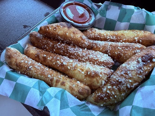 I was really hungry when I got in the car so I popped open the container with the breadsticks first. There were six thick, buttery, golden brown pieces of bread. They were covered in garlic butter and Parmesan cheese. I grabbed the smaller one and bit in and it was an instant lover affair. There was a cup of marinara in the box too but I didn’t even use it. There was a buttery, garlicky, salty crunch on the bite through the bread but it was so soft on the inside. I ran down to the Speedway down the street to get a coupe of Pepsi’s and ended up sitting in the parking lot there and finishing off all six of them.