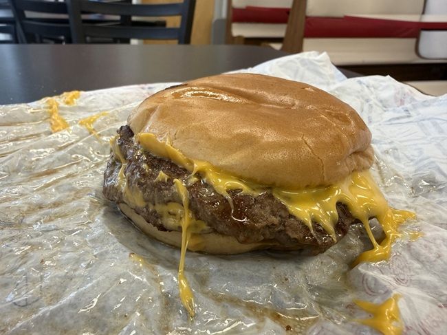 I put in an order for a plain double cheeseburger and (what I thought) was the four piece Flamethrower Chicken tender meal. I wasn’t paying attention and she just rang me up for four pieces of the Flamethrower Chicken tenders…not the meal. That was fine. I was eating dinner at my brother’s and really I just wanted to try the tenders. The cost for the burger and four tenders was right around $7. My mom had given me a $20 to pay for it so I just used that instead of putting it on my card.