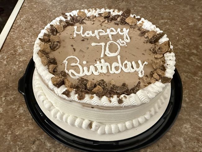 I didn’t get any “ice cream” because we had something special for my mom. My sister-in-law had ordered a Blizzard cake from Dairy Queen and it was already sitting at the house waiting to be eaten. I have always loved Dairy Queen’s cakes. This one was a peanut butter cup Blizzard so it was layered with the cake, a peanut butter cup Blizzard then topped with more soft serve and Peanut Butter Cup chunks. There were quite a few people there because my nieces boyfriends were there so they took my extra piece of cake….damn kids 😉 It was a delicious cake though and we got our Dairy Queen Blizzards without having to each get a Blizzard before leaving town.