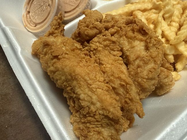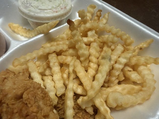 I went for the fries first while I was feeling out who was going to eat how many chicken tenders. The fries are super basic. They’re thinner crinkle cut fries. Absolutely nothing special about these. If you like to dip them in sauce, I suppose these are good dipping fries. Otherwise they’re pretty unassuming crinkle cuts.