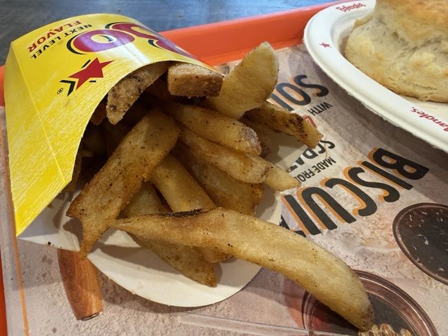 The other two times I’ve eaten at Bojangles, I ordered a 2pc chicken meal and chicken tenders. I decided this time to try Bo’s Chicken Sandwich. I ordered it as a large combo with a Pepsi and an order of fries. I also added on two biscuits. The cost was right around $18.