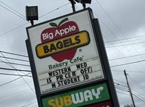 The Kalamazoo location for Big Apple Bagels is on West Main Street and Piccadilly Road in Kalamazoo’s Westwood Neighborhood. The bagel shop shares a building with other restaurants. There’s a Subway location and Lake Burger. Kalamazoo used to have a second Big Apple Bagels location. First, it was on the corner of Whites and Westnedge in a building that became J. Gumbo’s and is right now transforming in to a Savvy Sliders. The store moved down the street to Westnedge and Parker in a building built for them but that location closed to and is now Apoptosis Brewing. That leaves this West Main location and the Portage location as the two left in the Kalamazoo metro.