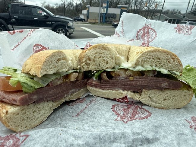I put in an order for the Kickin’ Roast Beef sandwich. I asked for it on an Everything bagel without looking at the shelves. They were out of Everything so I said plain was fine. The cost for the sandwich was right around $7.
