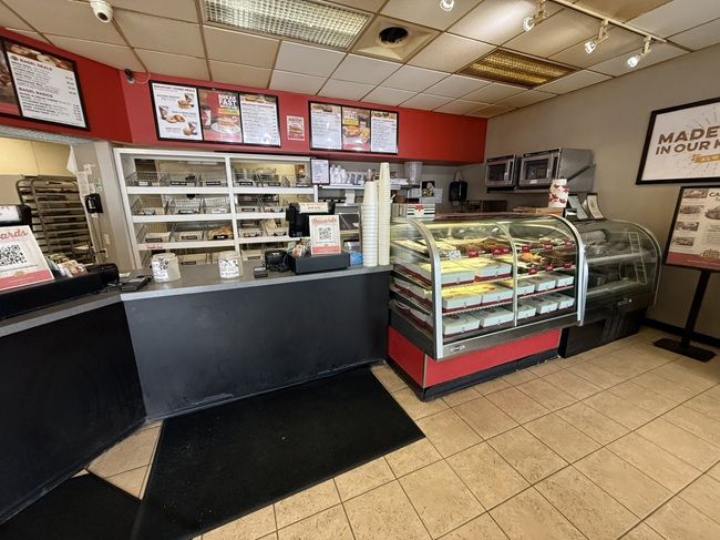 I stopped in around 1:00 PM so the store was kind of winding down from the lunch rush. There’s an order counter near the back of the store with a display case that includes some sweets. The bins of bagels are behind the counter and they were pretty well picked over for the day. I took a look at the menu board and went for the lunch sandwiches since I usually do breakfast when I go to a bagel shop. I decided to do something new.