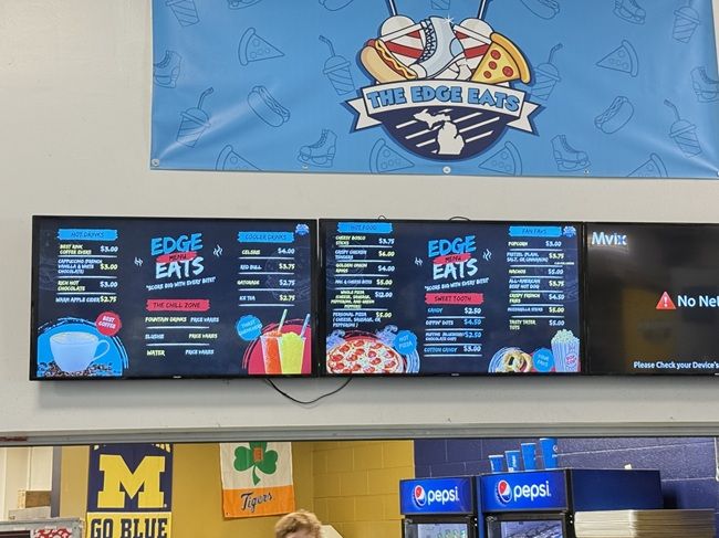 And finally, food. The rink has a concession stand in the corner near East Rink. They have a lot of the typical snack shop foods. L ordered a pizza slice at one point. I tried to order some French fries but they said they were having a problem with the fryer at the time and I just never went back. I did grab a fountain Pepsi while I was there and we also got a couple of Gatorade’s. Like I said, we only spent a few hours at the rink so we weren’t really there long enough to eat. We had planned on stopping on the way home but I got called in to work so we had to quash that too and just head back to Kalamazoo.
