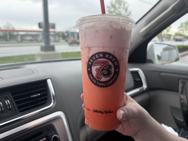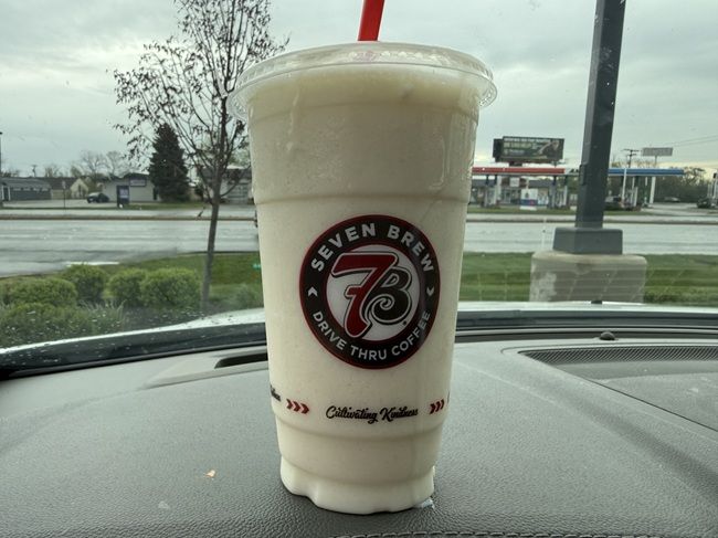 The next morning, they found 7 Brew for the first time. When we got loaded up in the car, the goal was to get to Kokomo and stop at the same 7 Brew as our first stop on the trip.